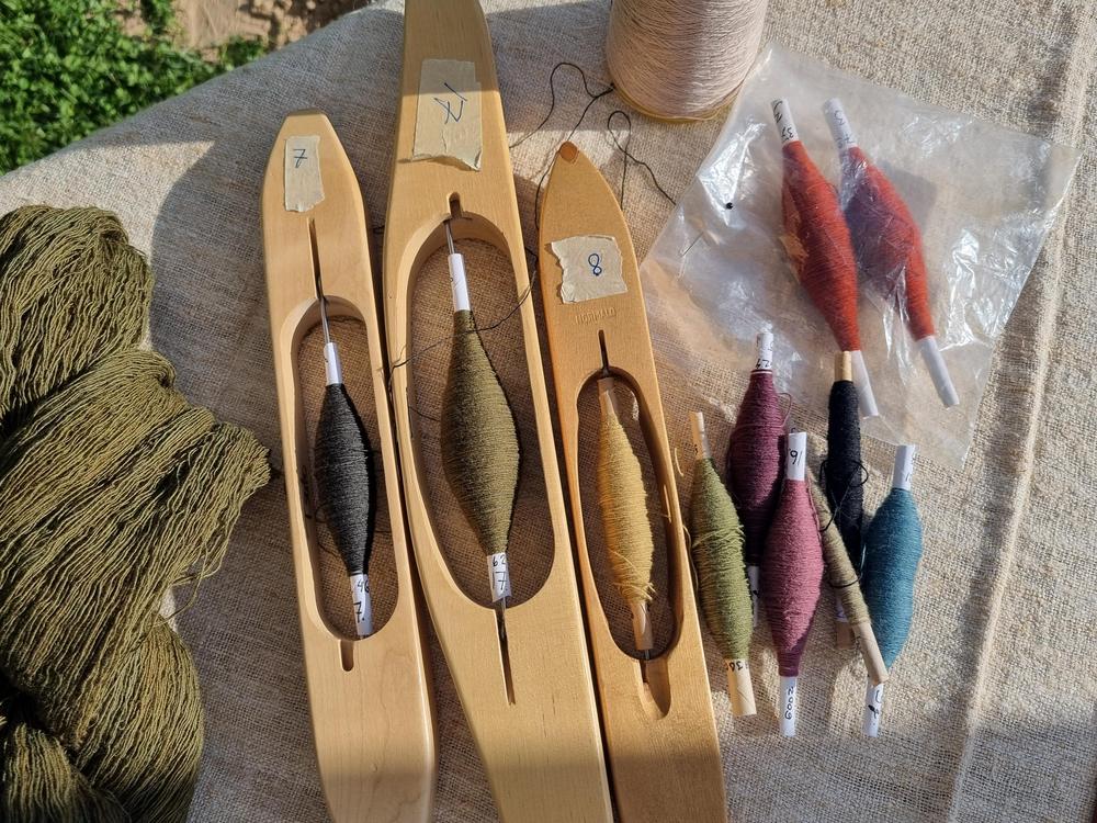 Liivin 2025 päivitettyä kudontaohjetta ja erikoisvärjättyjä kudelankoja saa ostaa Masku-Seuralta.